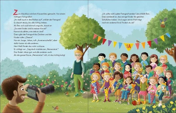 Hilf mit, wenn Ben seinen Sitzplatz sucht, Gemeinsamkeiten mit den anderen Kindern entdeckt, seine Angst einfach weghüpft und seine Schultüte plündert. Macht das Spaß! Kein Wunder, dass Ben es am Ende des Tages gar nicht erwarten kann, wieder in die Schule zu gehen!