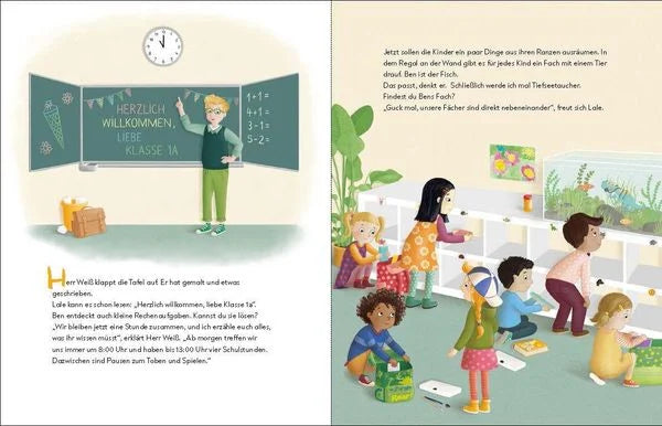 Ben kommt in die Schule und ist mächtig aufgeregt – und na gut, ein bisschen Angst hat er auch. Mit seiner Familie packt er den Schulranzen und macht sich auf den Weg zur Einschulung. In der Schule ist es sehr spannend: Er trifft seinen Klassenlehrer und lernt viele neue Orte und Kinder kennen.