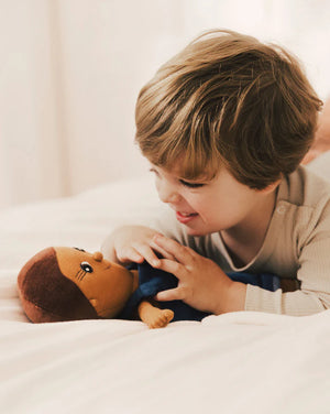 Du kannst die Kleider unserer Bio-Stoffpuppen maschinell waschen: separat von der Puppe die Puppenkleidung einfach bei 30 Grad im Schonwaschgang mit ähnlichen Farben in die Waschmaschine packen und los geht's.