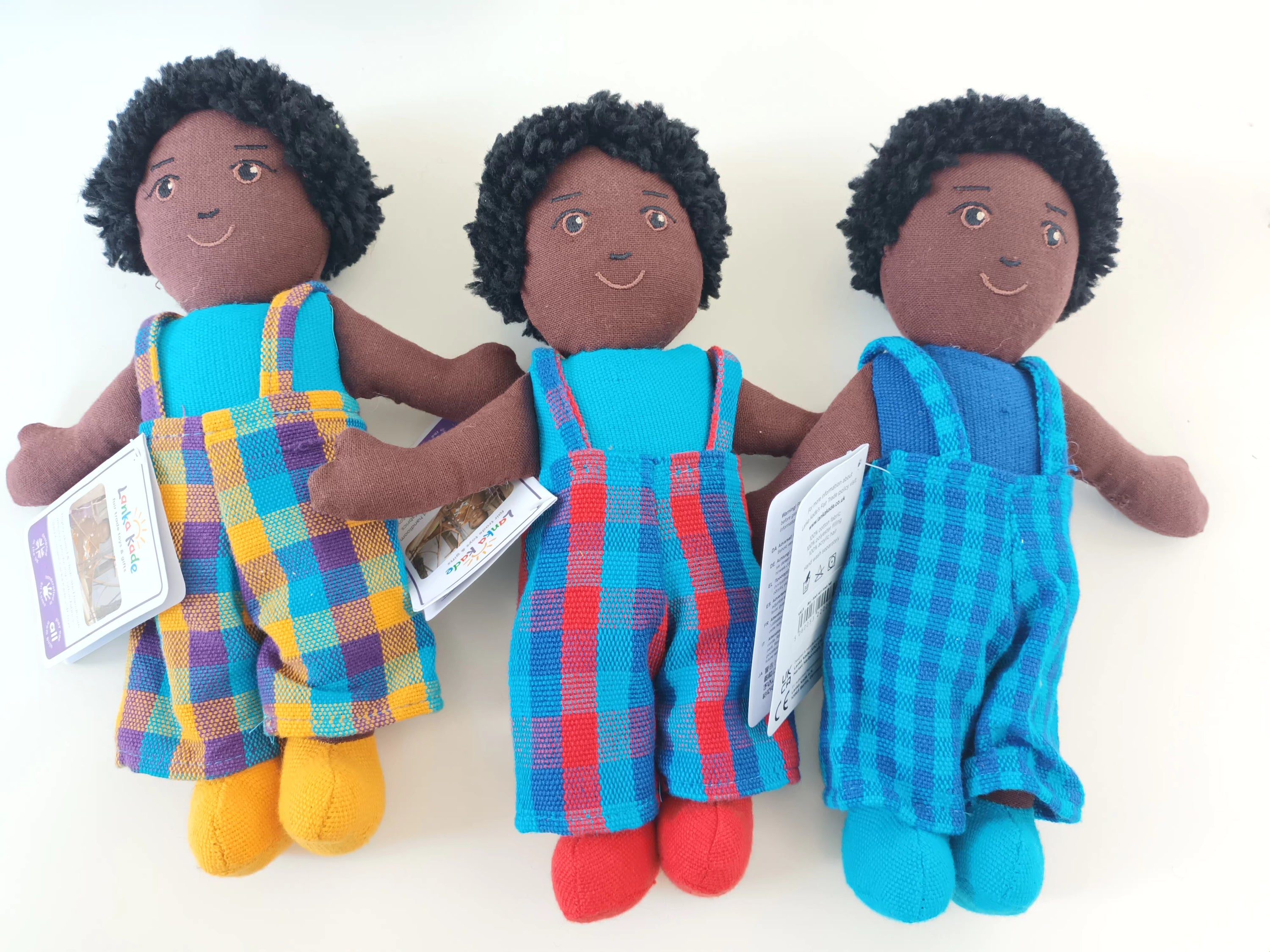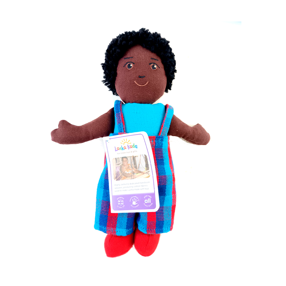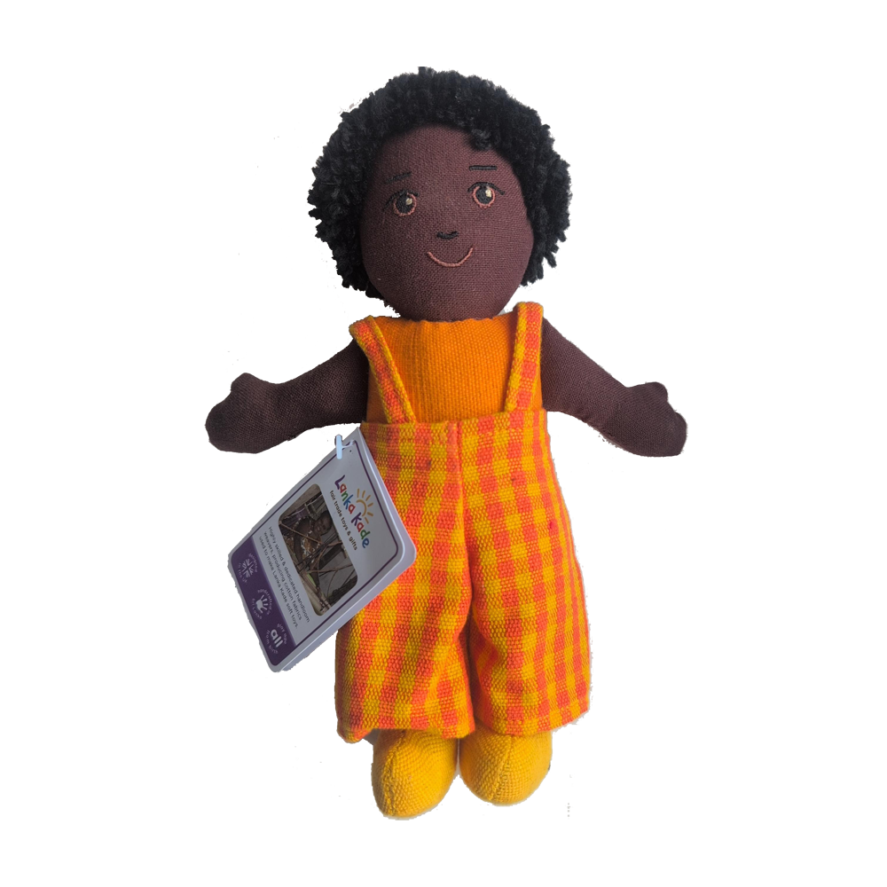Jede Fairtrade-Puppe aus Sri Lanka ist ein Unikat und handgefertigt aus wunderschön handgewebtem Stoff. Die kleine Puppe ist ideal zum Kuscheln und Liebhaben. Die Puppe ist mit Polyester gefüllt und hat Acrylhaar. Die Farben und das Design des Outfits können variieren.