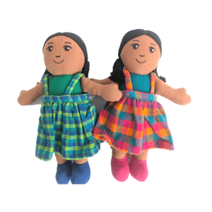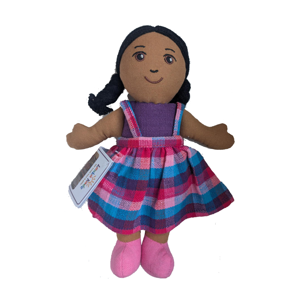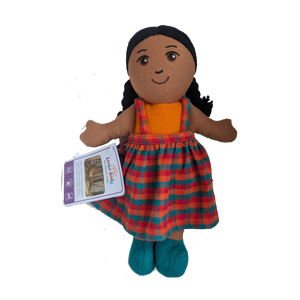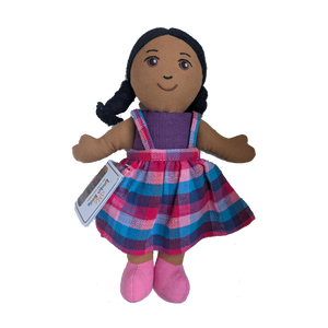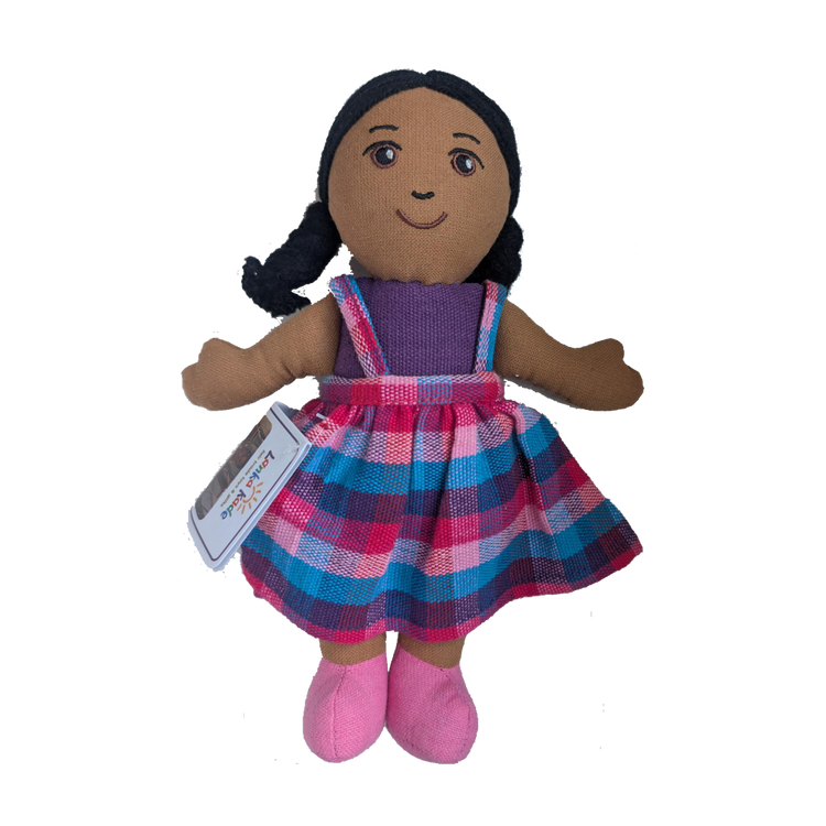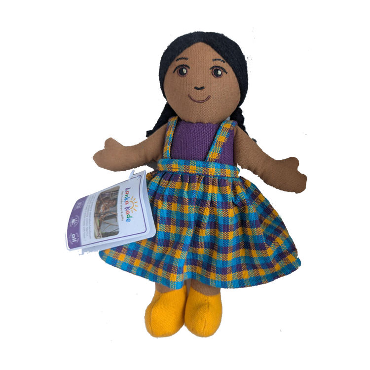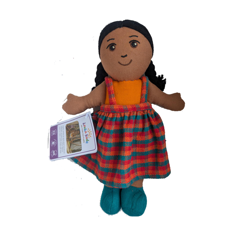 Jede Fairtrade-Puppe aus Sri Lanka ist ein Unikat und handgefertigt aus wunderschön handgewebtem Stoff. Die kleine Puppe ist ideal zum Kuscheln und Liebhaben. Die Puppe ist mit Polyester gefüllt und hat Acrylhaar. Die Farben und das Design des Outfits können variieren.